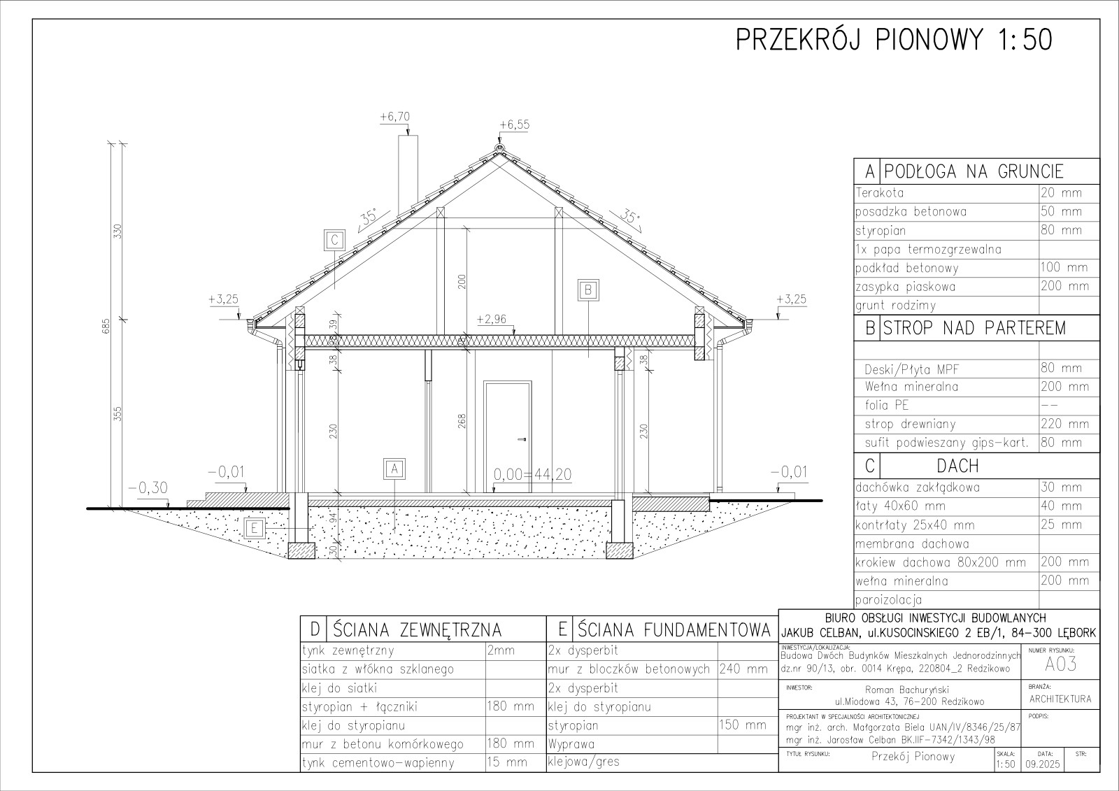 • Dach: dwu spadowy, konstrukcja-wiązar dachowy , pokrycie dachówką cementową goteborg powłoka duratopro.