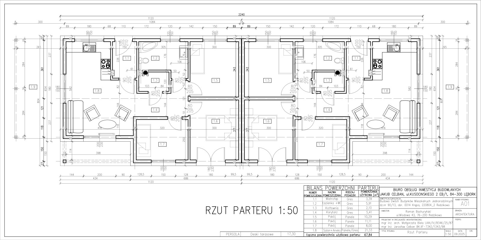 Oferujemy przestronne domy parterowe w zabudowie bliźniaczej, zaprojektowane z myślą o nowoczesnym stylu życia i wygodzie codziennego użytkowania. Każdy dom posiada: